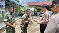 Wujud Sinergitas, Polsek Labuan Amas Utara Beri Kejutan HUT ke-80 TNI kepada Koramil 1002-08/LAU